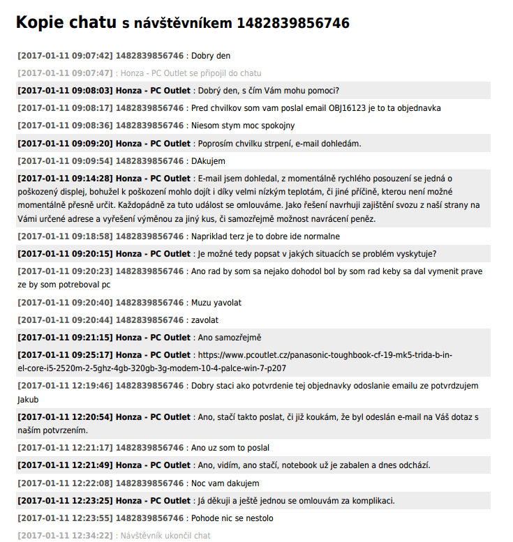 Zde přikládáme na ukázku jeden z příkladů našeho řešení - Zákazníkovi vlivem panujícíh nízkých teplot dorazil notebook s poškozeným displejem, jako náhradu jsme promtně zaslali o třídu vyšší model a původní kus na naše náklady svezli.